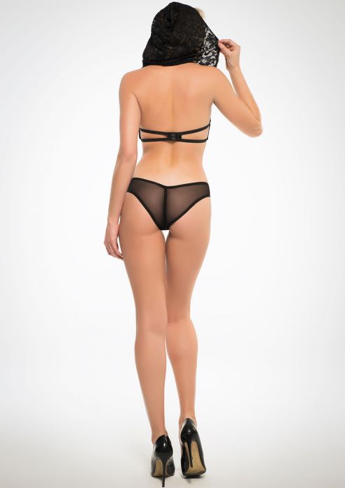 Σετ σουτιέν-κιλοτάκι από ελαστική διαφάνεια και κεντητή δαντέλα. Το σουτιέν έχει ενσωματωμένη κουκούλα από δαντέλα και διαθέτει υποστήριξη στο μπούστο. 90% συνθετικό, 10% ελαστάνη.