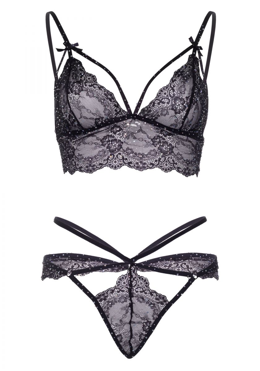 Πολυτελές σετ 2 τεμαχίων διακοσμημένο με μικρά λαμπερά στρας. 88% νάυλον, 12% ελαστάνη.