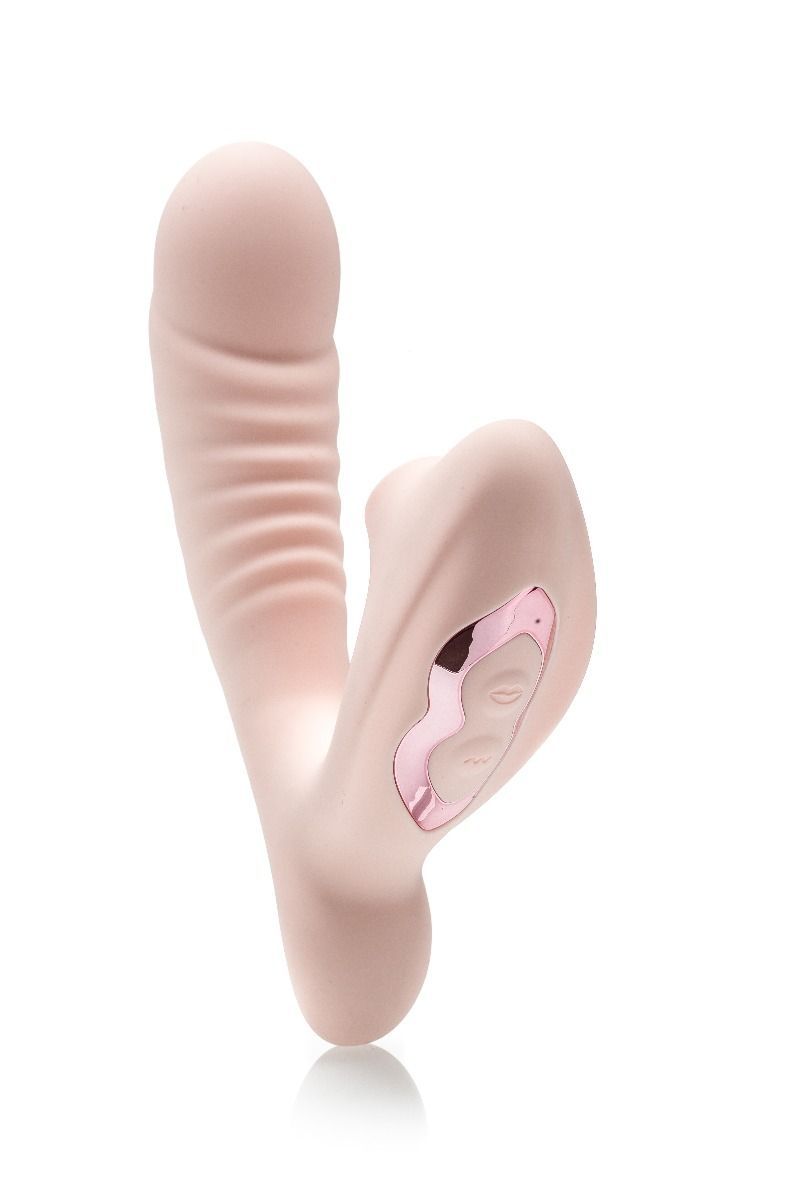 Rabbit δονητής που συνδυάζει σε ένα έξυπνο design τα καλύτερα από δυο κόσμους. Ένα κύριο στέλεχος με διεγερτικές ραβδώσεις για ένα υπέροχο κολπικό μασάζ και ένα κλειτοαναρροφητή στρατηγικά τοποθετημένο για να σας προσφέρει τα… φιλάκια του κατά την πλήρη διείσδυση! Θα σας ξετρελλάνει και δεν θα χορταίνετε να παίζετε μαζί με τις 10 λειτουργίες και 10 εντάσεις δόνησης που διαθέτει. Κατασκευασμένος από βελούδινα απαλή σιλικόνη για μια πολυτελή αίσθηση που σίγουρα θα εκτιμήσετε. Μέγιστο μήκος κυρίως άξονα 17εκ, μέγιστη διάμετρος 3,7εκ. Επαναφορτιζόμενη μπαταρία με παρεχόμενο καλώδιο USB.