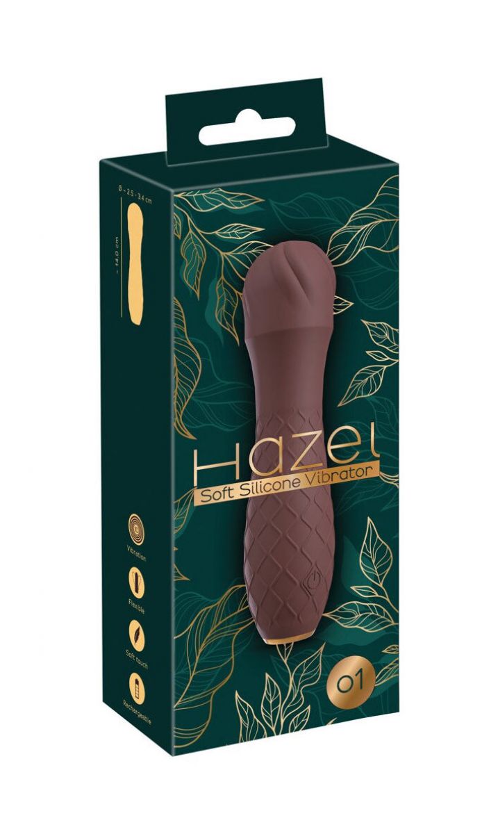 Το Hazel 01 είναι ένας ισχυρός και κομψός δονητής, ειδικά σχεδιασμένος τόσο για κλειτοριδική όσο και για κολπική διέγερση. Διαθέτει 10 λειτουργίες δόνησης, οι οποίες ελέγχονται εύκολα με το πάτημα ενός κουμπιού. Η εύκαμπτη κεφαλή του βοηθά να φτάσει σε όλα εκείνα τα σημεία που σας κάνουν να αναστενάζετε από απόλαυση, ενώ η απαλή, μεταξένια επιφάνεια του προσφέρει ευχάριστη αίσθηση κατά τη χρήση. Με ανάγλυφες λεπτομέρειες στην άκρη, για επιπλέον διέγερση. Είναι κατασκευασμένος από ιατρικής ποιότητας σιλικόνη, PU και ABS. Επαναφορτιζόμενος, με παρεχόμενο καλώδιο φόρτισης USB. Συνολικό μήκος: 14 εκ. Εισχωρήσιμο: 11εκ. Διάμετρο: 2,5 - 3,4 εκ. Βάρος: 102g