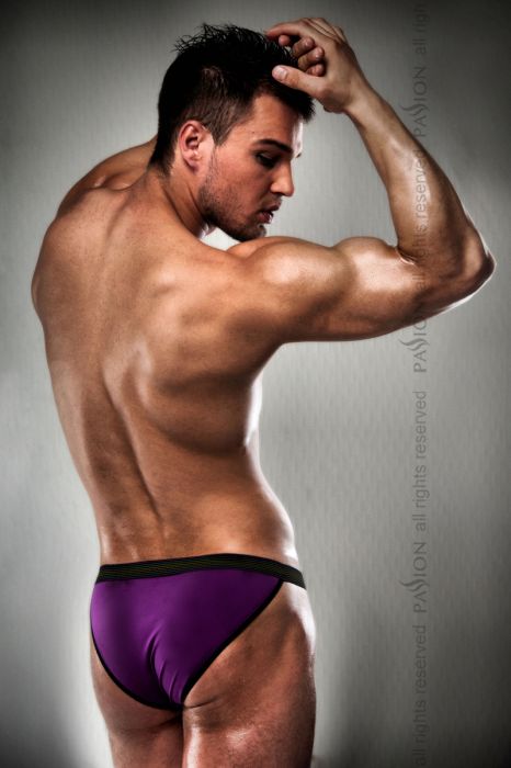 Μοβ σλιπάκι με μοντέρνα σχεδίαση. Λάστιχο στα χρώματα του ουράνιου τόξου. 90% συνθετικό, 10% ελαστάνη.