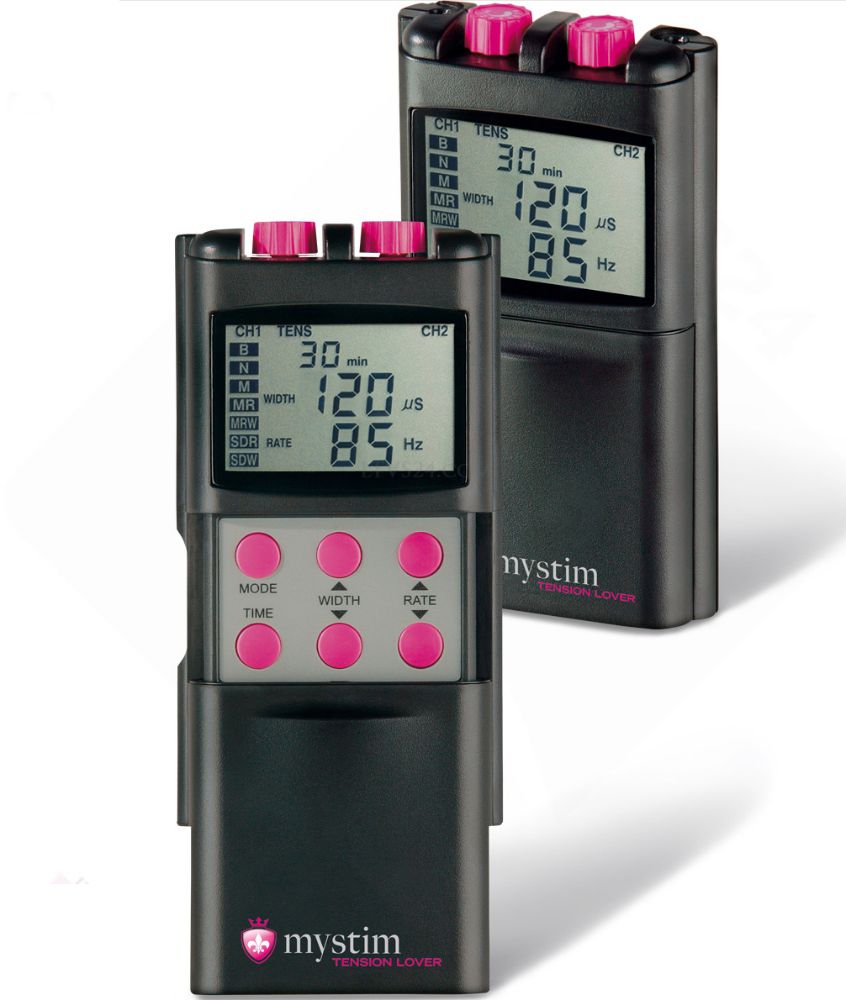 Το Tension Lover είναι ένα κιτ ηλεκτροδιέγερσης που είναι συμβατό με όλα τα προϊόντα ηλεκτροδιέγερσης της Mystim. Περιλαμβάνει δυο απολήξεις (κανάλια) που μπορούν να προγραμματιστούν ξεχωριστά με 7 προγράμματα ηλεκτροδιέγερης η κάθε μία, χρονοδιακόπτη 10 - 60 λεπτών, ρύθμιση έντασης και ρύθμιση παλμικών συχνοτήτων καθώς και με διακόπτη που αποτρέπει την κατά λάθος αλλαγή προγράμματος ή έντασης. Η συσκευή διαθέτει επίσης μεγάλη, φωτιζόμενη οθόνη με ευδιάκριτα γράμματα και υποδοχή που περιστρέφεται για να μη προκαλείται φθορά στα καλώδια.