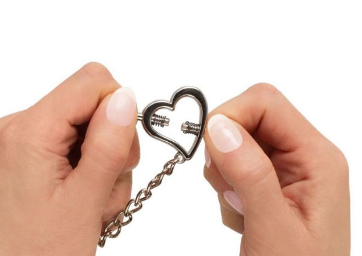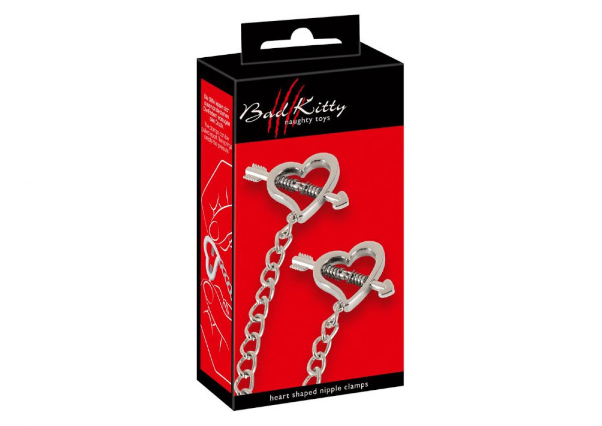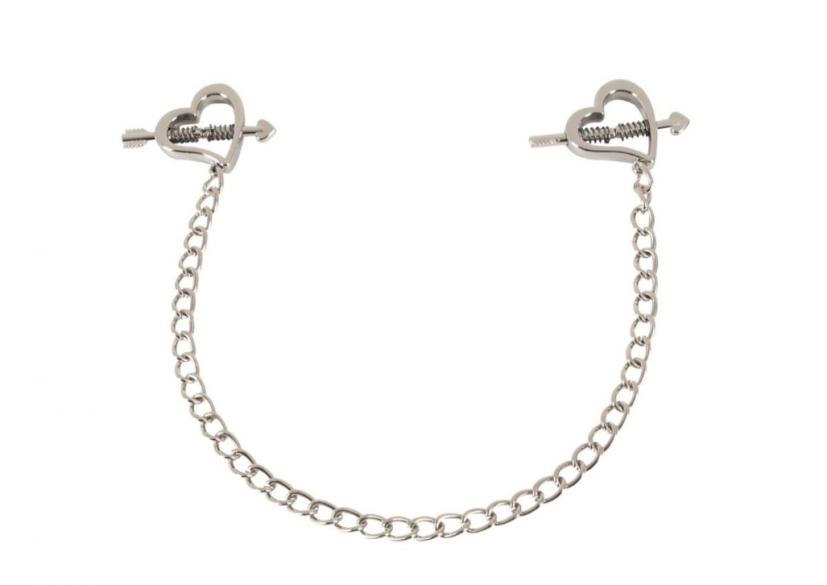 Διακοσμήστε τις θηλές σας με αυτούς τους υπέροχους σφιγκτήρες σε σχήμα καρδίας. Κατασκευασμένοι από 100% ανοξείδωτο ατσάλι, αυτό το κίνκυ αξεσουάρ θα γίνει αναπόσπαστο κομμάτι στα τολμηρά SM παιχνίδια σας! Με διακοσμητική αλυσίδα μήκους 31,5 εκ. Μήκος σφιγκτήρα: 2,5εκ. Συνολικό βάρος: 47g