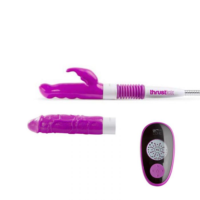 Πανίσχυρο, αυτό-θερμαινόμενο, τηλεχειριζόμενο sexmachineυψλής τεχνολογίας και design! Φορητό και πάντα διαθέσιμο να σας συνεπάρει με τις εκρηκτικές του δονήσεις. Διαθέτει 2 ανταλλακτικά παιχνίδια, ένα rabbitδονητή 10,8 εισχωρήσιμων εκ και 3,8 εκ μέγιστης διαμέτρου και ένα ρεαλιστικό ομοίωμα πέους 17 εισχωρήσιμων εκ και 3,8 εκ μέγιστης διαμέτρου. Χειριστείτε χωρίς καλώδια τις 8 ταχύτητες δόνησης και τα 6 προγράμματα λειτουργίας μέχρι 10 μέτρα απόσταση! Χωρίς μεγάλη αναμονή η συσκευή θερμαίνεται σε θερμοκρασία σώματος και σας δίνει ανεπανάληπτές αισθήσεις!