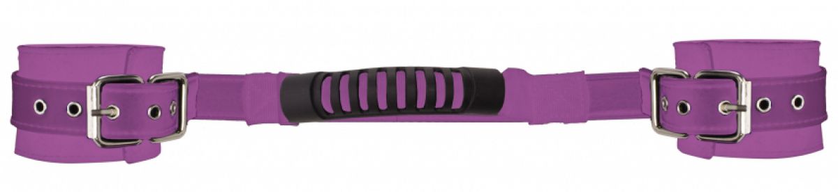 Δερμάτινες χειροπέδες με μακρύ ενδιάμεσο στραπ που χρησιμοποιείται και ως «λαβή» για να έχετε τον απόλυτο έλεγχο επάνω της! Ρυθμιζόμενα περικάρπια, ασφαλή και πολύ άνετα, καθώς διαθέτουν εσωτερική επένδυση.