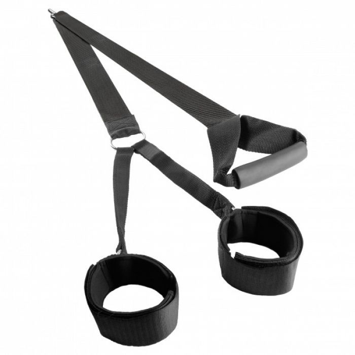 Με μια βίδα στο ταβάνι μπορείτε να μετατρέψετε την κρεβατοκάμαρά σας σε μια bondage φαντασίωση! Με το Fantasy Strap δένετε με ασφάλεια και άνεση τα χέρια (ή πόδια αν προτιμάτε) του/της σκλάβου/α σας και με το χερούλι καθορίζετε το ύψος με το οποίο θα κρατηθούν δεμένα! Το τι έπεται στη συνέχεια… το αφήνουμε στην φαντασία και στις ορέξεις σας! Νάυλον/Νεοπρεν. Συνολικό μήκος: 2,5 μ.
