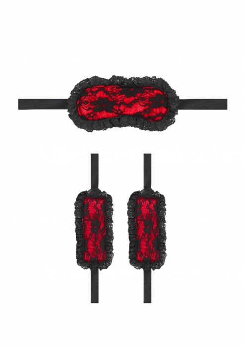 Εισαγωγή στον κίνκυ κόσμο του bondage με ένα ρομαντικό σετ 2 κομματιών που περιλαμβάνει σέξι δαντελένια μάσκα ματιών και ζεύγος χειροπέδων, και τα δυο με σατέν δεσίματα και μαλακή επένδυση.