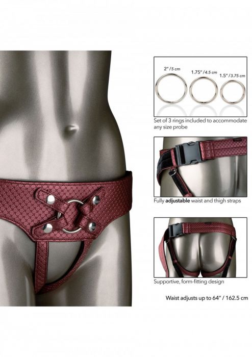 Άνετο, πολυτελές και μεγάλης αντοχής ζωνάτο από δερματίνη για όσες αναζητούν ένα στυλάτο αξεσουάρ για τα παιχνίδια τους. Εσωτερική επένδυση από βελούδο, μπροστινό μαλακό επενδυμένο κάλυμμα προστασίας, σούπερ μαλακή ζώνη στο πίσω μέρος, ιμάντες ρυθμιζόμενοι στο πλάι και ανοιχτό καβάλο που σας επιτρέπει δικές σας προσωπικές διεισδύσεις. Διαθέτει 3 αποσπώμενους μεταλλικούς δακτυλίους που μπορούν να φιλοξενήσουν όλους τους δονητές της αγοράς. Μέγιστη περιφέρεια μέσης 162.5εκ. Υλικό: PVC, πολυεστέρας. Δακτύλιοι διάμετροι 3.25, 4.5 και 5 εκ.
