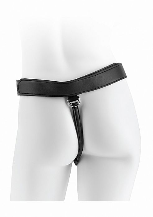 Επαγγελματικό strap-on βαριάς χρήσης, με ιμάντες από δερματίνη και βάση με εσωτερική επένδυση που δέχεται όλα τα συμβατά dildos της αγοράς. Μια άνετη, ανθεκτική και απολύτως ρυμιζόμενη εξάρτηση που θα ικανοποιήσει και τις πιο απαιτητικές. Μαζί με μεγάλο «φιμωμένο» ομοίωμα πέους με την πατέντα Slide-Skinπου επιτρέπει να γλιστράει προς τα κάτω το πετσάκι. Στη συσκευασία περιλαμβάνονται 3 κρίκοι διαδοχικών διαμέτρων που επιτρέπουν την εναλλαγή sextoys όλων των διαμετρημάτων. Επίσης, περιλαμβάνονται δείγματα λιπαντικού και καθαριστού sextoys. Υλικόδονητή: PVC. Εισχωρήσιμο μήκος: 18εκ, διάμετρος: 4,6εκ. Μέγιστο μήκος περιφέρειας 130εκ