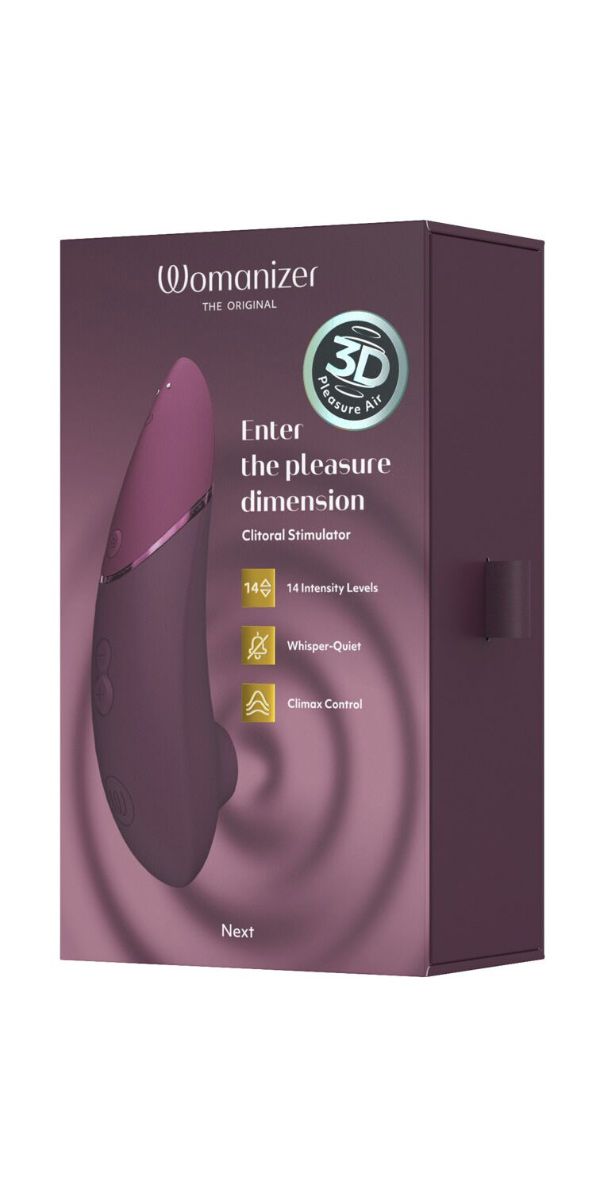 Ετοιμαστείτε για συναρπαστικά κύμματα απόλαυσης! Η πατενταρισμένη τεχνολογία 3D Pleasure Air παρέχει ακριβή διέγερση της κλειτορίδας χωρίς να έρχεται σε επαφή μαζί της. Χάρη στη καινοτόμα τεχνολογία Climax Control μπορείτε πλέον εκτός από την ένταση να επιλέξετε και το βάθος των κυμμάτων πίεσης. Η νέα και βελτιωμένη λειτουργία αυτόματου πιλότου αλλάζει αυτόματα τις εντάσεις, γεγονός που θα κάνει την απόλαυση ακόμα πιο εκπληκτική. Το Womanizer Next ξεκινά μόνο όταν έρθει σε επαφή με το δέρμα χάρη στη λειτουργία Smart Silence.