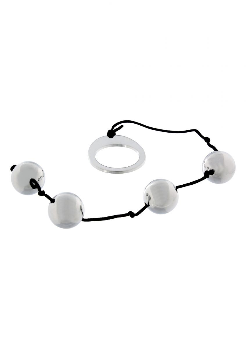 Τέσσερις γυαλιστερές μεταλλικές σφαίρες σε ένα κορδόνι. Εισχωρήστε τις αργά και νιώστε την απόλυτη ικανοποίηση σε κάθε σας κίνηση. Θερμαίνονται εύκολα και κρυώνουν εύκολα για εναλλαγή ερωτικών ερεθσμάτων. Μήκος: 19.5cm. Διάμ. Σφάιρας: 1.9 cm.